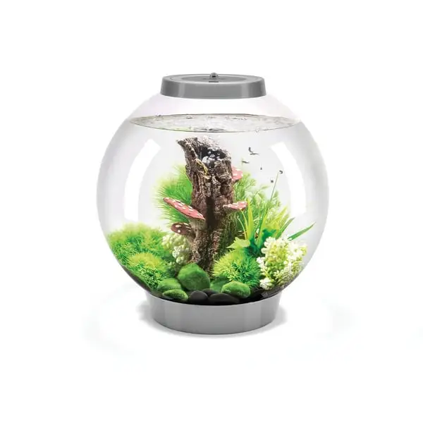 Das kugelrunde Aquarium biOrb CLASSIC 30 LED silber hat einen Durchmesser von 40 cm und fasst 30 Liter Wasser. Zum Komplettset gehören neben dem Acrylaquarium eine langlebige LED-Lichteinheit, eine Aquarienpumpe, ein Transformator, ein Ausströmerstein, Bodengrund aus Keramik sowie eine Filterkartusche. Das patentierte Filtersystem ist am Boden im schwarzen Fuß des Aquariums verborgen. Die Kombination aus biologischer, chemischer und mechanischer Filterung macht aus dem biOrb ein vollständig gefiltertes Aquarium. Dank der Acrylscheiben ist das Aquarium besonders stabil und widerstandsfähig. Die Scheiben sind wesentlich leichter als Glas, sodass der Standort des Aquariums jederzeit problemlos geändert werden kann. Die hohe Transparenz des Materials (93 %) macht die Aquarienwände besonders durchsichtig. Für den Komplettbetrieb benötigt das biOrb Aquarium eine sichere 12 Volt Spannung. Wir empfehlen für dieses Aquarium den Tierbesatz auf kleine Garnelen und/oder Schnecken zu beschränken!