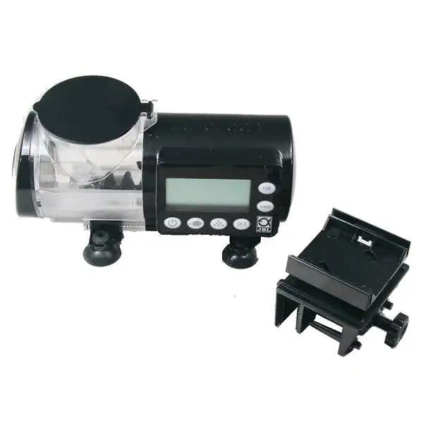 1x JBL Futterautomat für Aquarien, zwei Halterungen, 3x 1,5 V AA Batterien