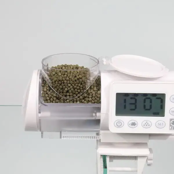 Praktischer Futterautomat: Automatische FĂĽtterung von Aquarienfischen – FĂĽr alle Granulate von 1,0 bis 3,0 mm. Einfache Programmierung: Bis zu 4 x tägliche FĂĽtterung mit individuellen Futtermengen. BefĂĽllbar mit 125 ml Futter und erweiterbar durch Aufschrauben einer 250 ml Futterdose auf 375 ml. An/Aus-Schalter fĂĽr manuellen Betrieb, einfaches Verstellen von Futterzeiten und Menge. Mit Adapterring fĂĽr JBL PRONOVO-Dosen 250 ml. Luftanschluss zur Futtertrocknung, universelle Befestigung durch Sauger oder Halterklammer (360° Drehbarkeit auf der Halterung). Lieferumfang: Futterautomat fĂĽr Aquarienfische mit Halterungen und 3 x 1,5 V AA Batterien und Adapaterring fĂĽr 250 ml JBL PRONOVO Dosen.