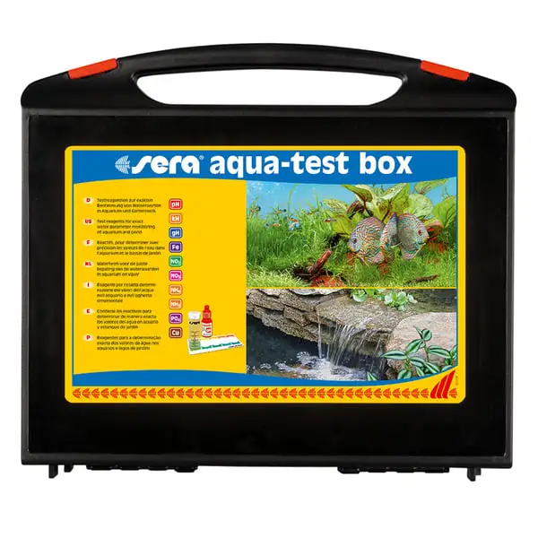 Um das Aquariumwasser regelmäßig auf optimale Werte prüfen zu können, benötigt jeder Aquarianer einen Testkoffer. Sera hat hierfür die sera aqua-test box entwickelt. Mit dieser Box lassen sich schnell und einfach vorbeugende Maßnahmen gegen z. B. Algen ergreifen. Somit ist die Gesundheit Ihrer Fische und die Reinheit Ihres Wassers nicht mehr gefährdet. (Etikett des Koffers kann abweichen)