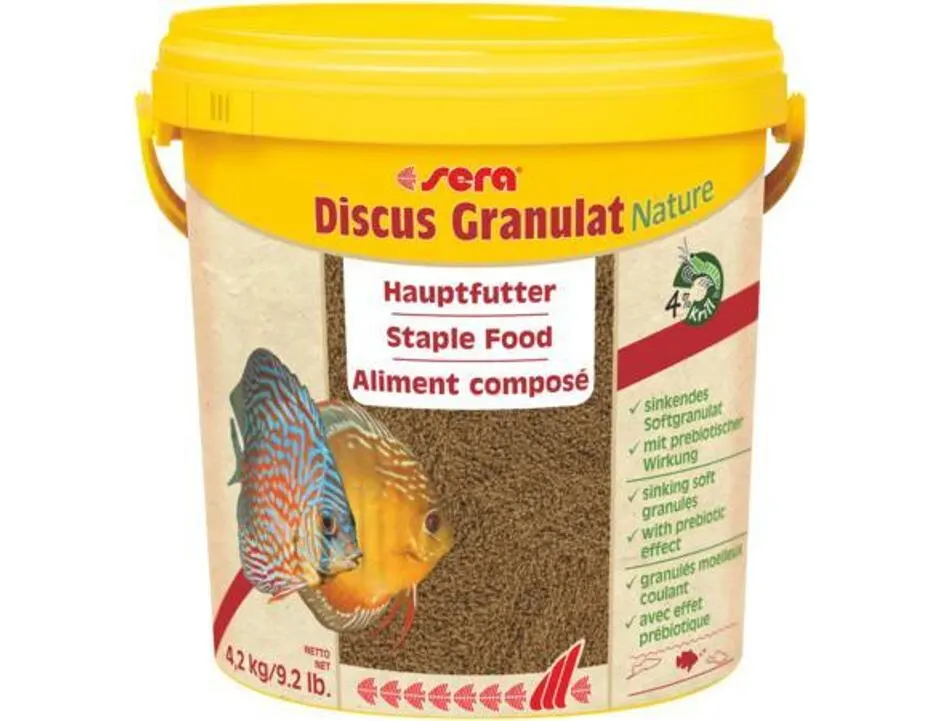 Sera Discus Granulat Nature ist ein Basisfutter ohne Farb- und Konservierungsstoffe aus schonend hergestelltem Weichgranulat fĂŒr alle Diskussionen (auch Jungfische) und andere anspruchsvolle Zierfische.