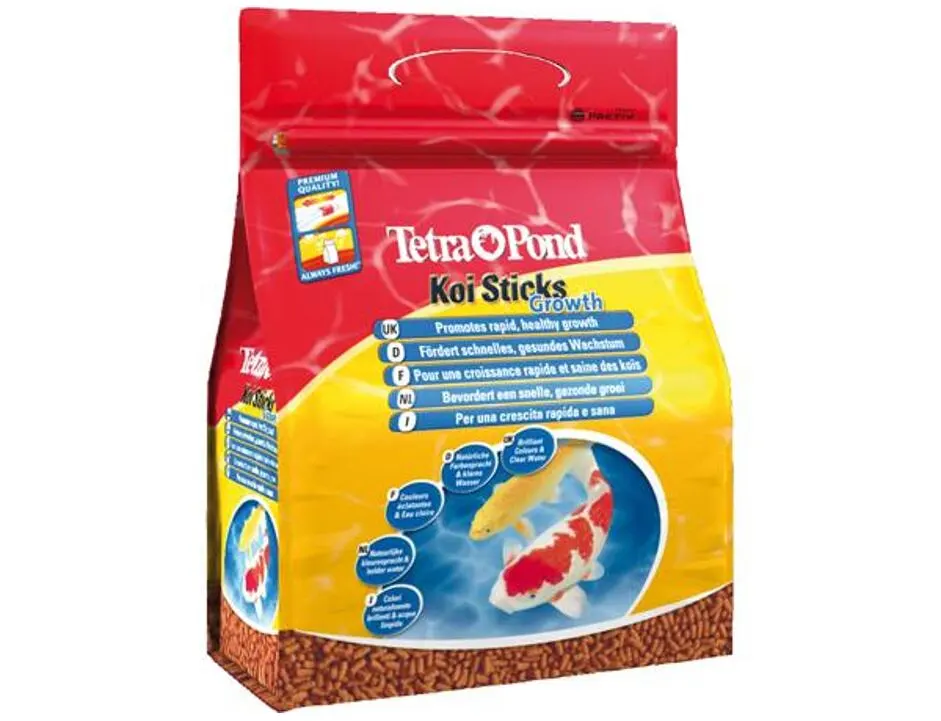 Hochwertige, schwimmfĂ€hige Futtersticks, die speziell fĂŒr eine gesunde und ausgewogene ErnĂ€hrung von Koi entwickelt wurden.