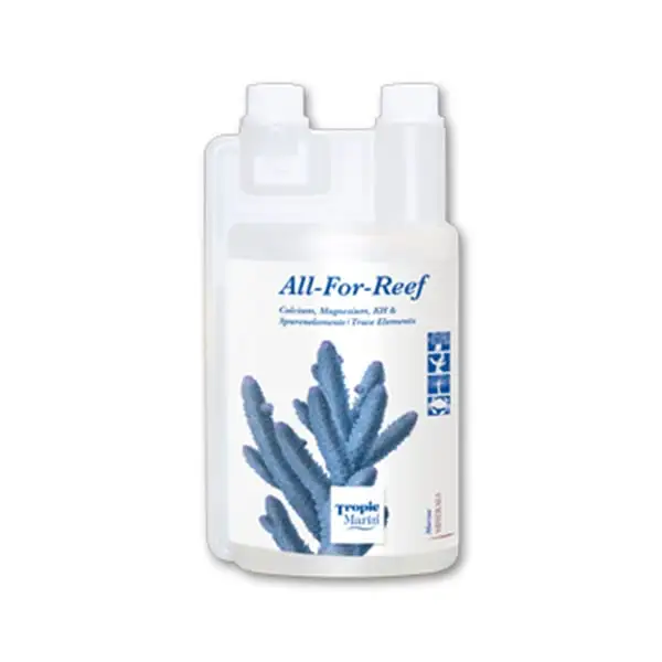 Durch das Wachstum der Organismen und anderer Prozesse im Aquarium werden Mineralstoffe verbraucht und müssen daher regelmäßig ergänzt werden. Dazu gehören vor allem die notwendigen Elemente Calcium, Magnesium und Strontium sowie Karbonathärte-Bildner für das Wachstum der Kalkskelette von Steinkorallen, Kalkrotalgen und anderer Rifforganismen. ALL-FOR-REEF enthält alle diese Komponenten in hochkonzentrierter Form. Darüber hinaus sind auch die wichtigsten Spurenelemente enthalten: Iod, Brom und Fluor für Wachstum und Festigung der Skelette von Hornkorallen, Schwämmen und Krebsen; Selen zur Beseitigung freier Radikale sowie Molybdän und Vanadium für den Aufbau wichtiger Enzymkomplexe.
